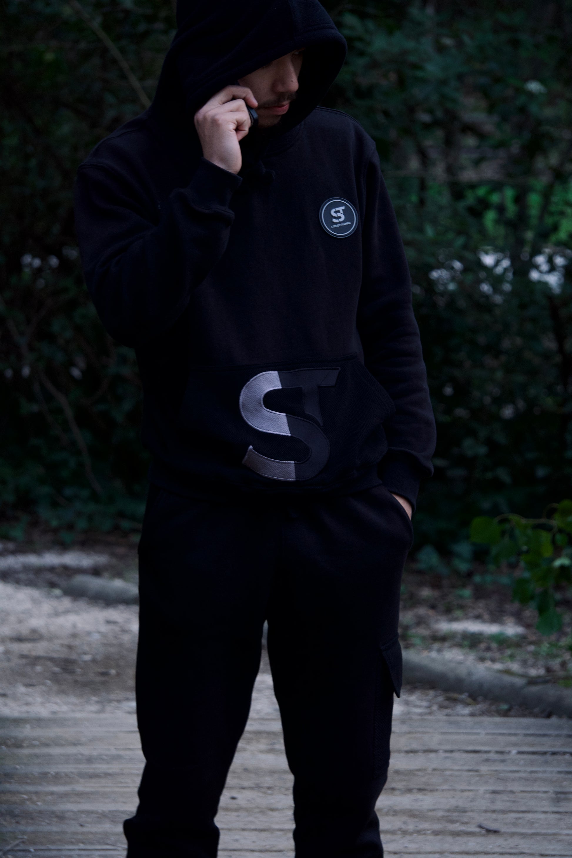 Pensé pour ceux qui vivent le mouvement au quotidien, ce survêtement noir 3 matières allie technicité, confort et esthétique street premium.